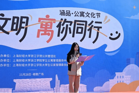 近日,上海财经大学浙江学院“涵品·公寓文化节”系列活动在欢声笑语中圆满落下帷幕。本届文化节以“共建文明,寓你同行”为主题,通过开幕式、十大趣味摊位、影子快闪、设计与创意大赛等多元形式,为学子们搭建了一个展示风采、交流情感、凝聚力量的舞台,让公寓这一“第二个家”洋溢着文明的温度与青春的朝气。