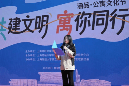 开幕式于2025年11月28日在格致广场隆重举行。学生代表许一婷登台分享公寓生活的点滴感悟,以真挚的情感传递同窗之间的深厚情谊与成长收获。