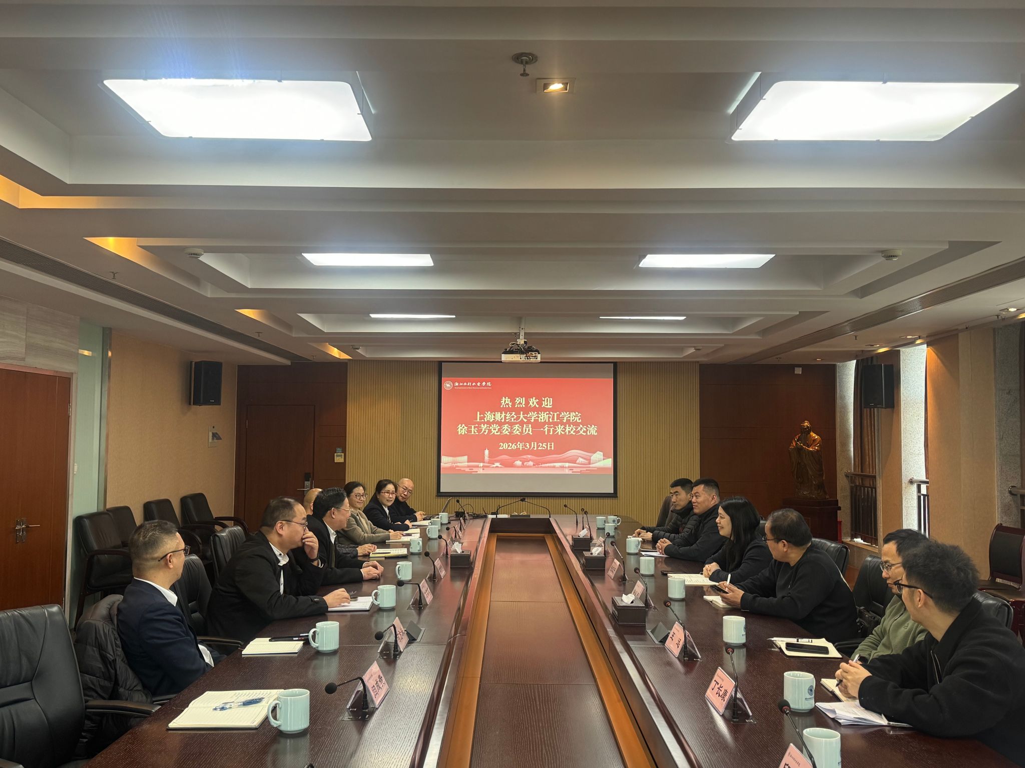 为进一步加强与兄弟院校的交流合作,全面提升我校安保工作和后勤服务保障能力、优化资产管理与采购流程、深化平安校园建设,2026年3月24日至25日,学校党委委员徐玉芳带队,安全保卫部、公共管理处、资产设备处、工会等相关部门人员一行,先后赴浙江特殊教育职业学院和浙江水利水电学院开展考察调研。